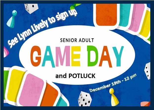 12/19 - Senior Adult Potluck and Game Day - 12 noon